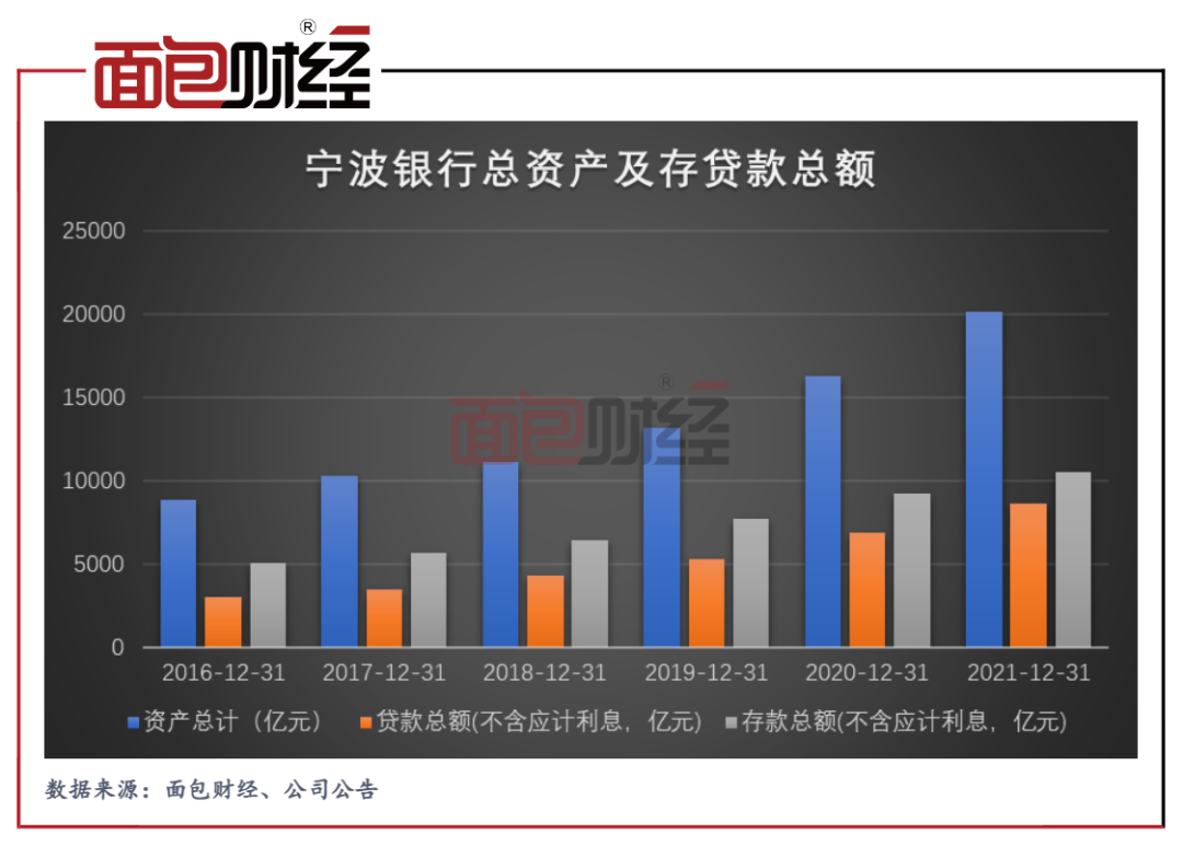 截至2021年末,寧波銀行資產總額達20156.07億元,較上年末增長23.90%;各項存款10528.87億元,較上年末增長13.80%;各項貸款8627.09億元,較上年末增長25.45%;該行發放貸款及墊款占資產總額的比重較上年末提升0.52個百分點至41.3%。