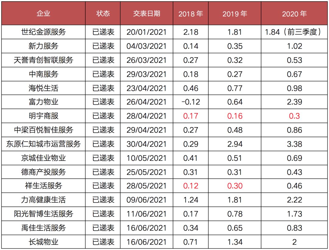 表:截止6月24日物管企業赴港上市排隊情況