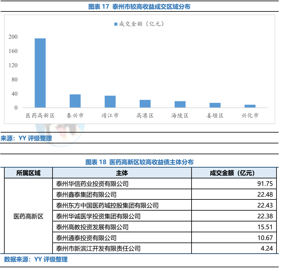 02區(qū)域與主體視角:結(jié)合市場(chǎng)來(lái)看,醫(yī)藥高新區(qū)尾部壓力較大,核心問(wèn)題在于前期過(guò)度基建,而后期招商引資力度不足。長(zhǎng)期視角下,產(chǎn)業(yè)層面醫(yī)藥研發(fā)投入力度相對(duì)保守,與高港區(qū)合并或成平臺(tái)債務(wù)化解抓手,但短期來(lái)看,醫(yī)藥高新區(qū)風(fēng)險(xiǎn)仍存。
