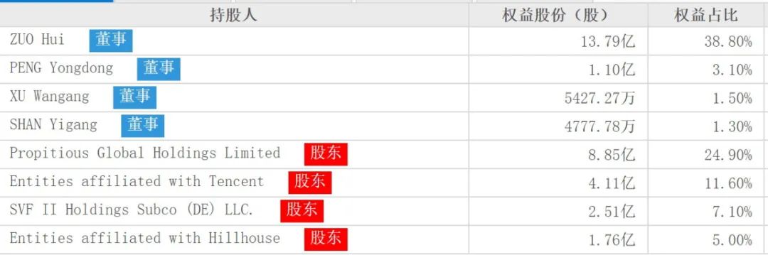 最新的股權比例顯示,左暉作為公司董事,持有貝殼找房38.8%的股份,截至美東時間5月20日收盤,貝殼找房的股價為49.89美元,市值590.74億美元,相比高峰時跌去了22%左右,但之于去年8月上市時來說增幅大概為35%。