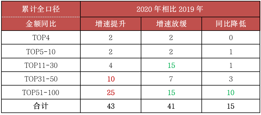 注:2020年單企業累計銷售金額同比增速與2019年增速的比較