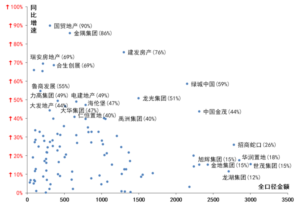行業內分化現象不斷加劇,一些“輕規模、慢周轉”的房企意識到規模的重要性,憑借豐厚優質的投資積累,加速供貨推盤,沖高業績,這類房企土地儲備兼具“量”與“質”雙高的特征,為業績增長提供保障。