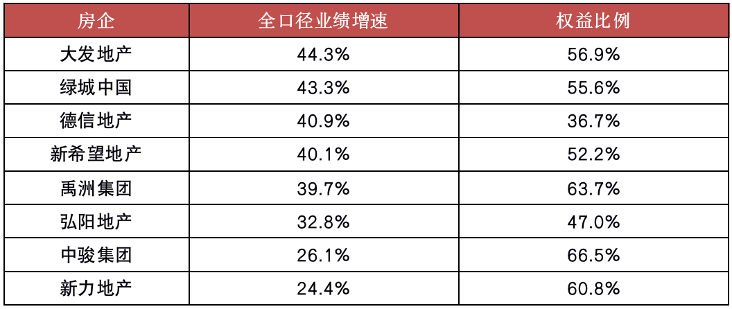 注:除碧桂園、富力、佳兆業為權益口徑與公告保持一致外,其余企業均為全口徑增速