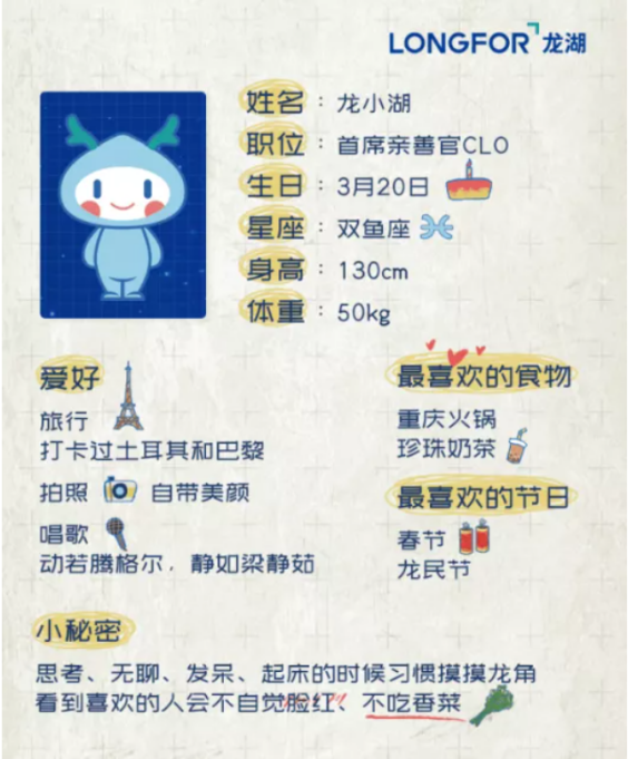 首先,從圖文營銷升級到人設、故事,使IP形象更加立體。以龍湖為例,2015年“龍小湖”剛剛推出時,主要是作為吉祥物進行線上線下的營銷活動。到2019年,龍湖集團任命“龍小湖”為集團首席親善官兼龍湖形象代言人。新版“龍小湖”的形象不僅局限在視覺層面,還打造人設、背景故事等,迭代后的“龍小湖”更具龍湖品牌辨識度。