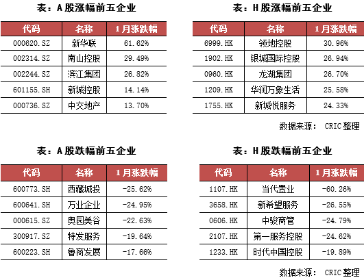 在A股房企方面,本月新華聯(lián)的漲幅較大,企業(yè)股價(jià)在1月有10個(gè)漲停板,同時(shí)也有5個(gè)跌停板,大起大落之下最終整月漲幅達(dá)到了61.62%,使其成為A股漲幅最大的房企。