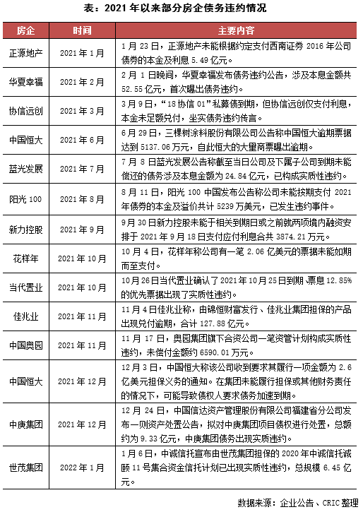 在債務(wù)違約方面, 1月6日,中誠信托宣布由世茂集團(tuán)擔(dān)保的2020年中誠信托誠頤11號(hào)集合資金信托計(jì)劃已出現(xiàn)實(shí)質(zhì)性違約,總規(guī)模6.45億元,引發(fā)了資本市場(chǎng)對(duì)世茂集團(tuán)流動(dòng)性的注意。整體看來,房企的流動(dòng)性危機(jī)仍在持續(xù),未來仍有可能曝出更多的債務(wù)違約事件。