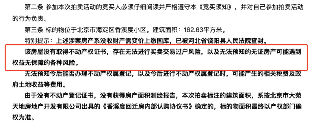 雖然看似跟羅先生一樣撿了大便宜,但是該競(jìng)買(mǎi)人可能不知道的是該套房源沒(méi)有取得不動(dòng)產(chǎn)權(quán)證書(shū)。同樣的在競(jìng)買(mǎi)須知中,法院對(duì)此情況已經(jīng)做了說(shuō)明,所以競(jìng)買(mǎi)人需要為自己的決定負(fù)責(zé)。