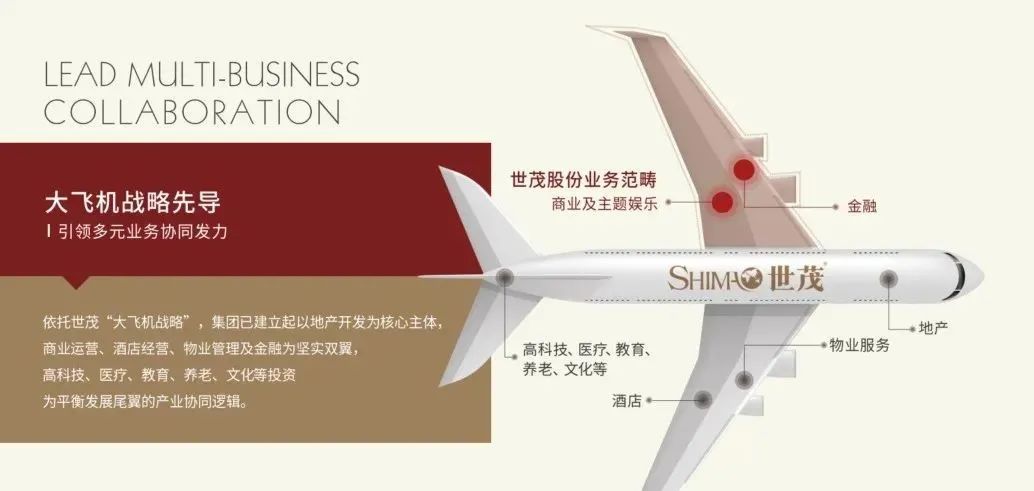 依托世茂的“大飛機”戰(zhàn)略,集團已建立起了主體+雙翼+尾翼的產(chǎn)業(yè)協(xié)同邏輯。