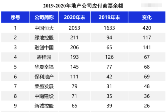 中國恒大、華夏幸福、綠地控股、碧桂園、融創(chuàng)中國這些“踩線較多的房企不僅商票簽發(fā)量大,而且2020年均出現(xiàn)大幅增長;”