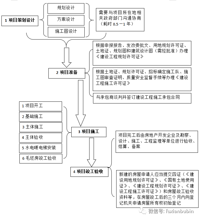 房地產開發建設過程可以細分為四個階段:分別為項目策劃設計階段、項目準備階段、項目施工階段和項目竣工驗收階段。