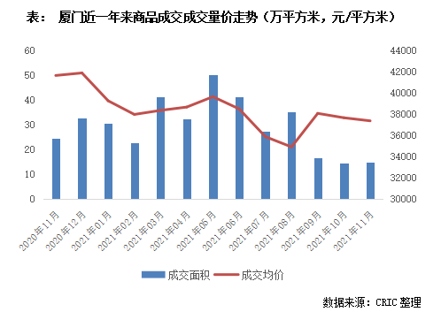 因此,廈門之所以還出現了大面積的流拍,更多是由于廈門近期樓市成交明顯放緩。據CRIC監測數據顯示,今年9月份以來,廈門商品住宅成交量較此前明顯收縮,月均成交面積降至20萬平方米以下,明顯低于此前月份的成交量。雖然近期樓市放貸速度有所加快,但市場下行的背景下,整體成交規模仍未出現上升趨勢,至11月末住宅成交面積僅為15萬平方米,同比降幅高達40%。規模縮減下,廈門的庫存消化周期也有所拉長,而11月又受多盤新開影響,去化周期更是拉長至20個月以上。