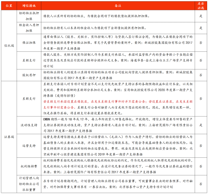 CMBN產(chǎn)品的增信措施方面設(shè)置非常全面,尤其是在外部增信措施,涵蓋了不動產(chǎn)抵押、股權(quán)質(zhì)押、應(yīng)收債權(quán)質(zhì)押、連帶責(zé)任保證/差額補(bǔ)足和流動性安排等多種方式。
