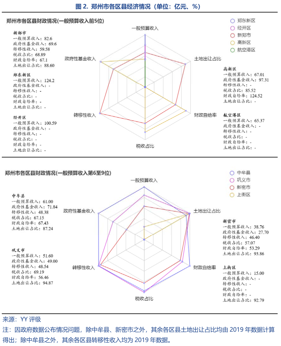 鄭州財政實力較強但內部各區縣水平存在分化,且土地財政依賴度較高。