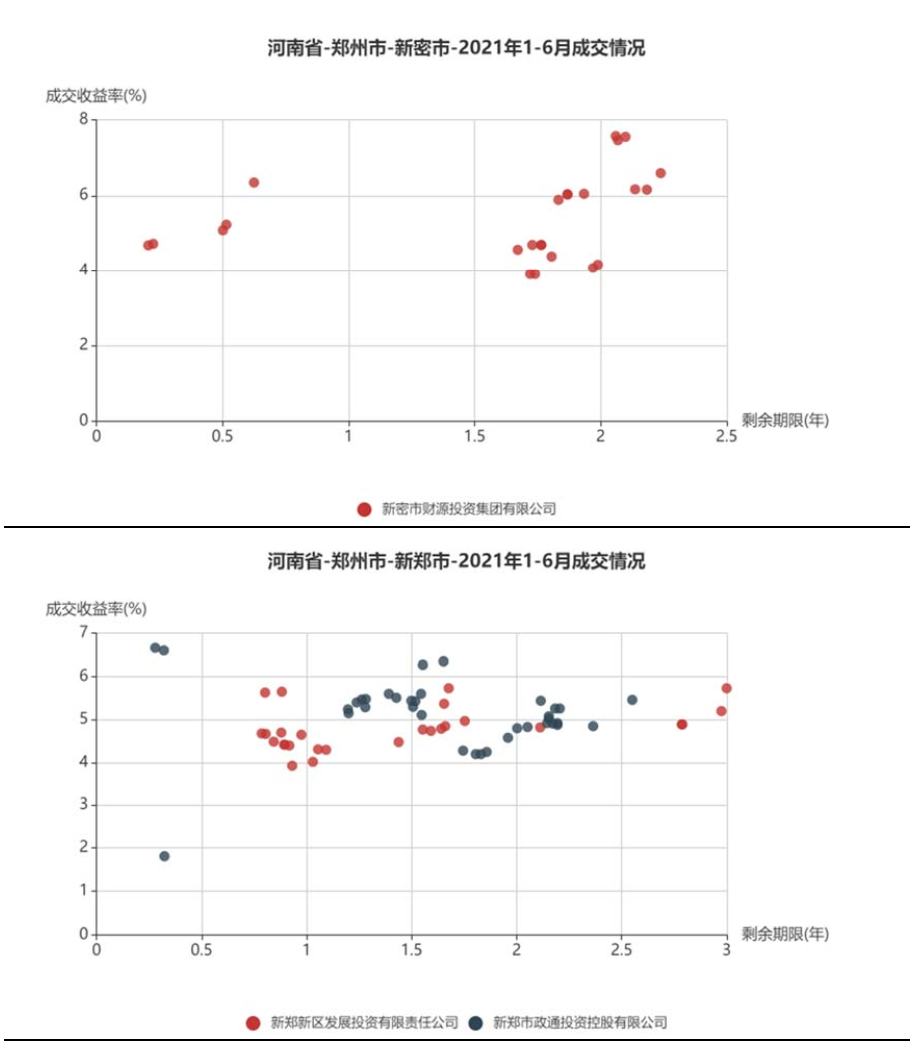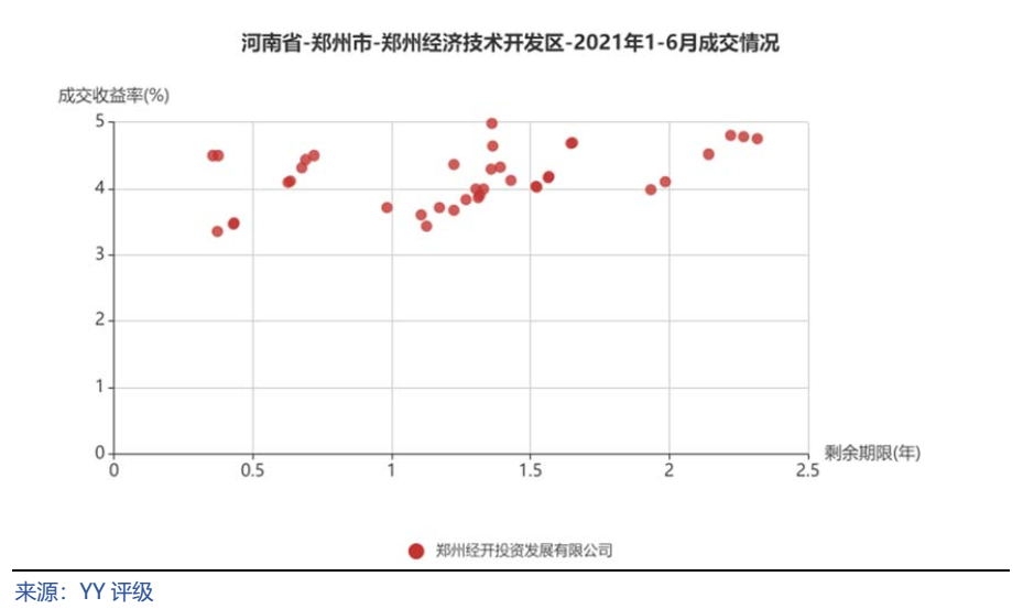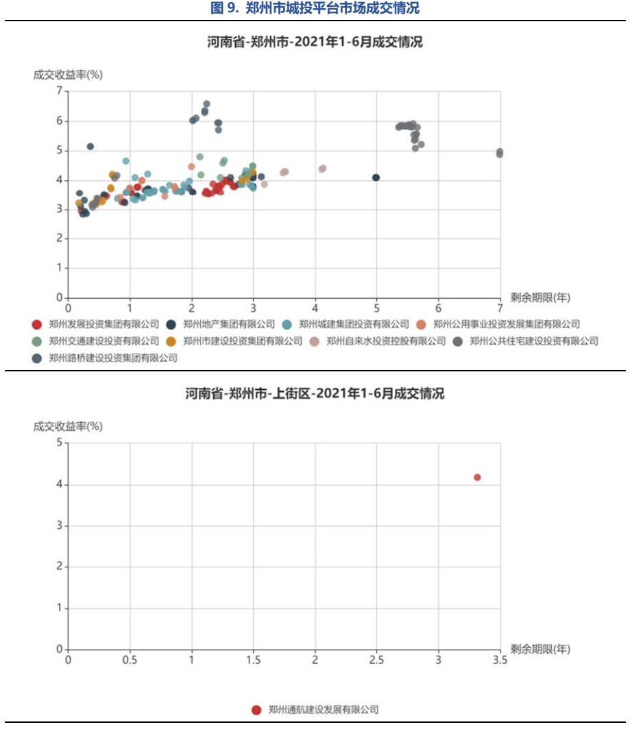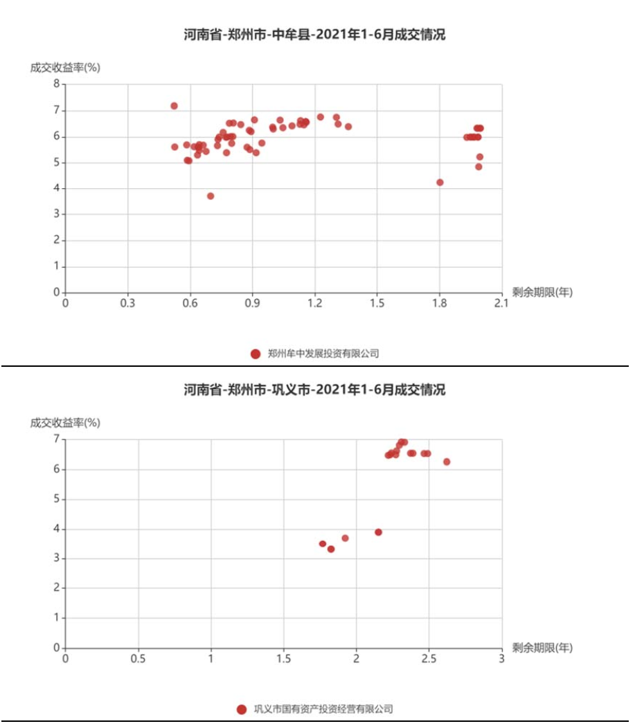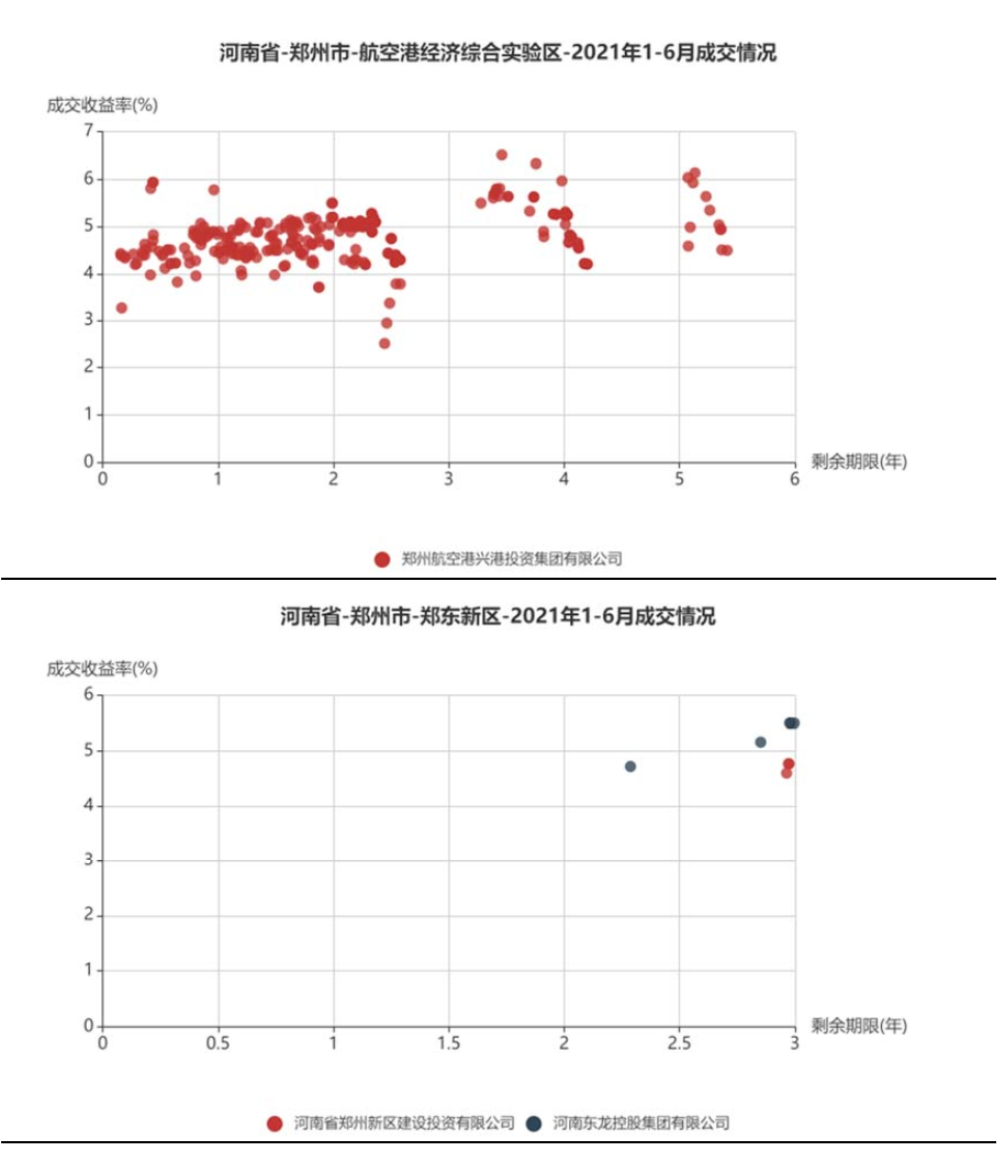根據2021年1-6月成交情況,鄭州市城投平臺沒有成交收益率高于8%的高收益成交。