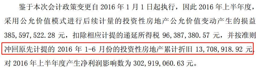 根據(jù)上市公司披露的公告,2016年1-6月,公司沖回原先計提的份的投資性房地產(chǎn)累計折舊約1370.89萬元。以下為截圖:
