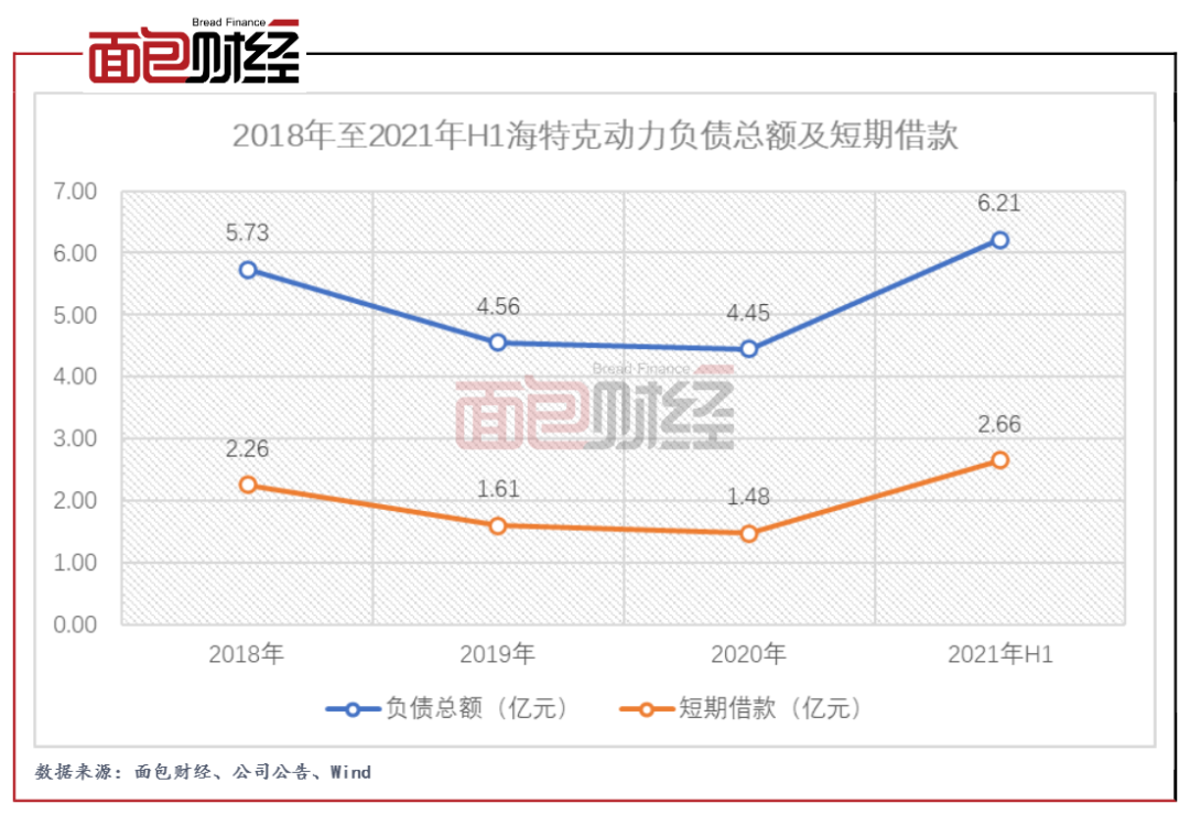 圖3:2018年至2021年H1海特克動力負債總額及短期借款