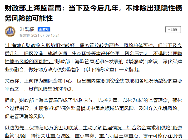 5、財政部上海監管局說,隱性債務有出現風險的可能。