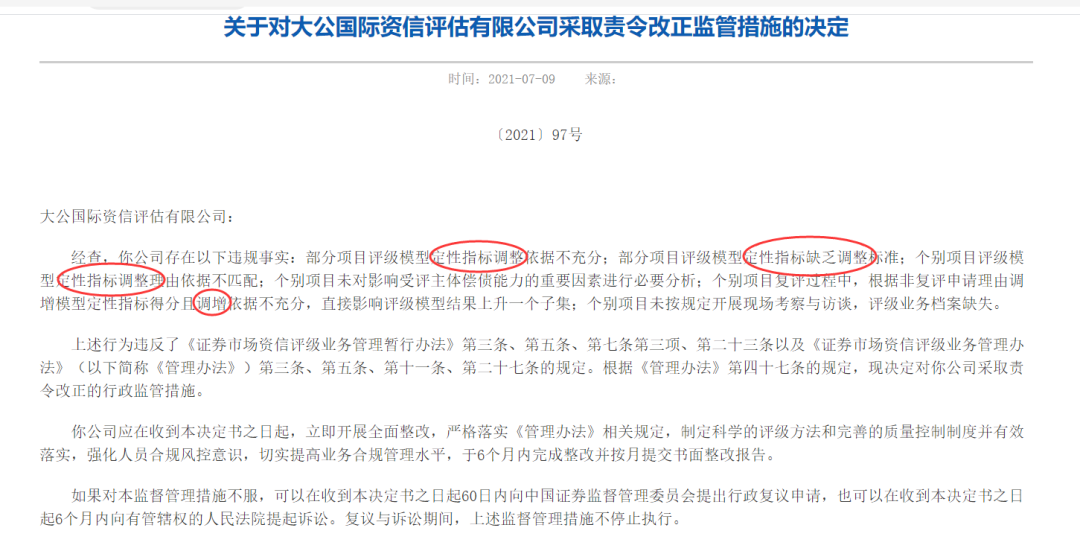 4、大公被北京證監局除了監管措施,里面列舉的違規事實基本圍繞: “定性指標”這幾個字。其實就一句話——不少評級結果給高了。