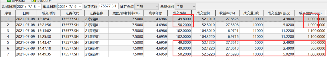 3、發行才3個多月就打對折的債出現了。寶能下屬鉅盛華的債21深鉅01連續兩天有凈價50的成交,作為當年的風云人物,姚老板在退出萬科大股東之爭以后,用深業物流和鉅盛華兩個主體進入債券市場,但是票面齊刷刷的6.0 6.5 7.0 7.5%,我也從沒有碰到過能夠入庫的買方機構。