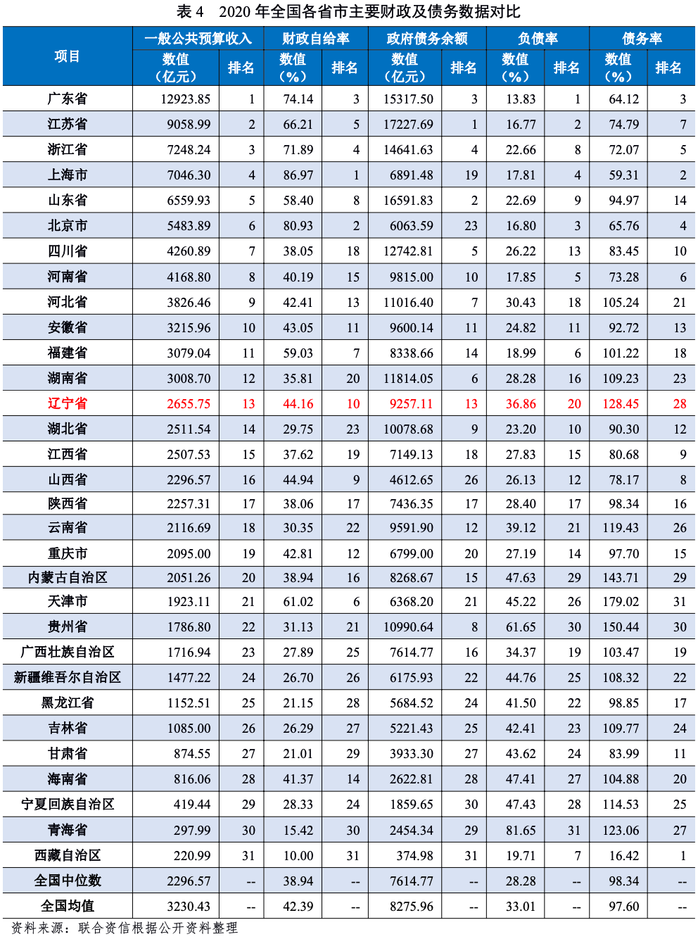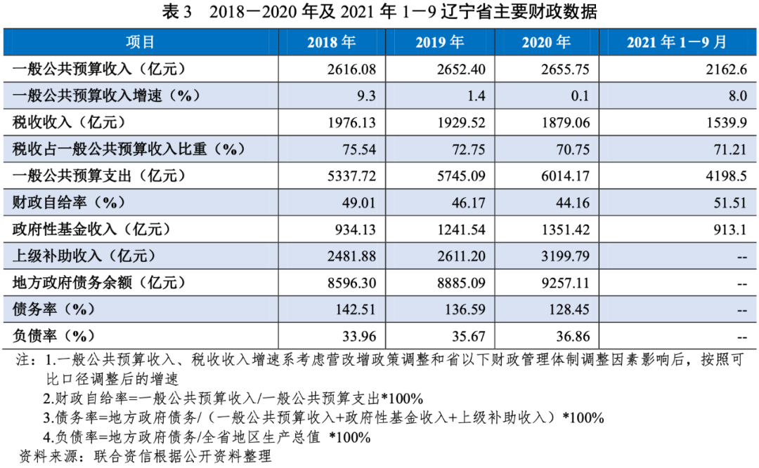 2.遼寧省財政實力及債務情況