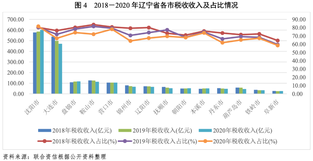 3.遼寧省各地級市財政收入對發債城投企業債務的支持保障能力