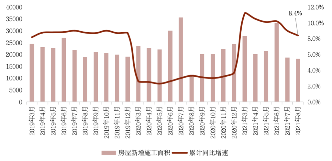 數(shù)據(jù)顯示,1-8月,房屋新開工面積135502萬平方米,下降3.2%,較1-7月降幅擴大2.3個百分點。受此影響,1-8月房屋施工面積同比增速再度收窄0.6個百分點至8.4%。