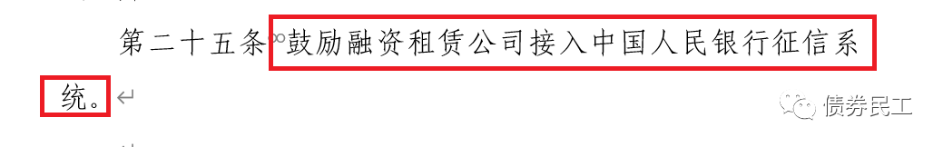 根據(jù)2021年11月19日印發(fā)的《廣東省融資租賃公司監(jiān)督管理實施細(xì)則》,第二十五條明確規(guī)定,“鼓勵融資租賃公司接入中國人民銀行征信系統(tǒng)”。