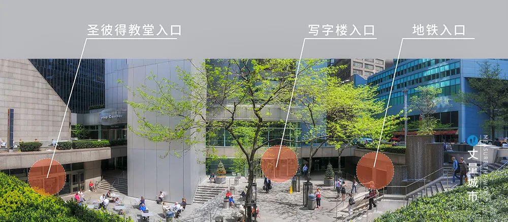 ▼ 花旗集團中心下沉廣場的樞紐作用