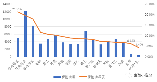 圖四:世界主要國家和地區的保險密度和滲透度