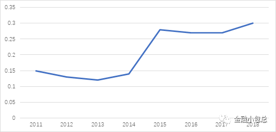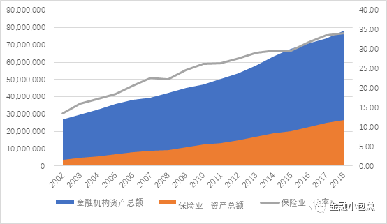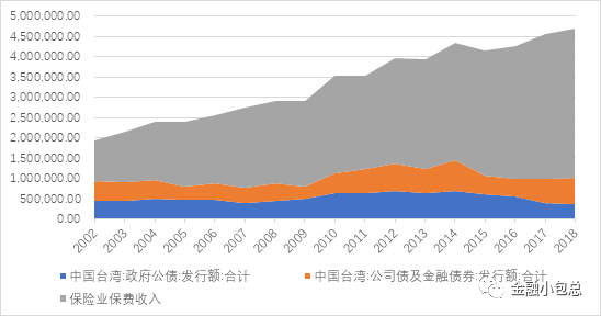 受益于保費規模的超高速增長,臺灣地區保險公司也成為金融細分領域中成長性最快的子板塊,臺灣地區保險公司總資產占全部金融機構總資產比重從2002年的16%提高到2018年34.14%。