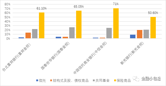 臺灣地區金融機構目前以“金控”體系為主,一個金控集團旗下囊括了銀行、保險、證券期貨和基金公司。金控體系下各個金融子板塊之間往往從考核機制上被要求要相互協作,因而金控下的銀行財富管理部門有意識引導民眾購買保單。