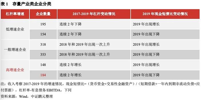 目前,違約風險已經不限于低級別主體,不限于經濟欠發達地區。從違約風險出發,本文將風險企業定義為,杠桿率持續上升、短期償債能力弱的企業,這類企業存續債務兌付風險高,同時,再融資難度在負面事件沖擊下會明顯提升,進一步負向循環。具體數據篩選,(1)在截至2021年3月22日存續債券產業債主體中,根據2017-2019年杠桿率變動情況,將存量企業分為杠桿率低增速企業(349家)、杠桿率一般增速企業(671家)和杠桿率高增速(332家)企業。(2)在杠桿率高增速(332家)企業中,將 “杠桿率連續2年上升、2019年現金短債比下降”的主體界定為高風險企業,樣本數量184家,此類主體債務擴張帶來的現金流入情況不理想,如果同時面對債務的集中到期,則再融資壓力將明顯加大。(3)本文樣本數據采用2017-2019年的財務數據,存量債券類型包括企業債、公募公司債(簡稱公司債)、私募公司債(簡稱私募債)、中期票據、短期融資券和定向工具,剔除財務數據缺失和已經出現風險事件的主體。