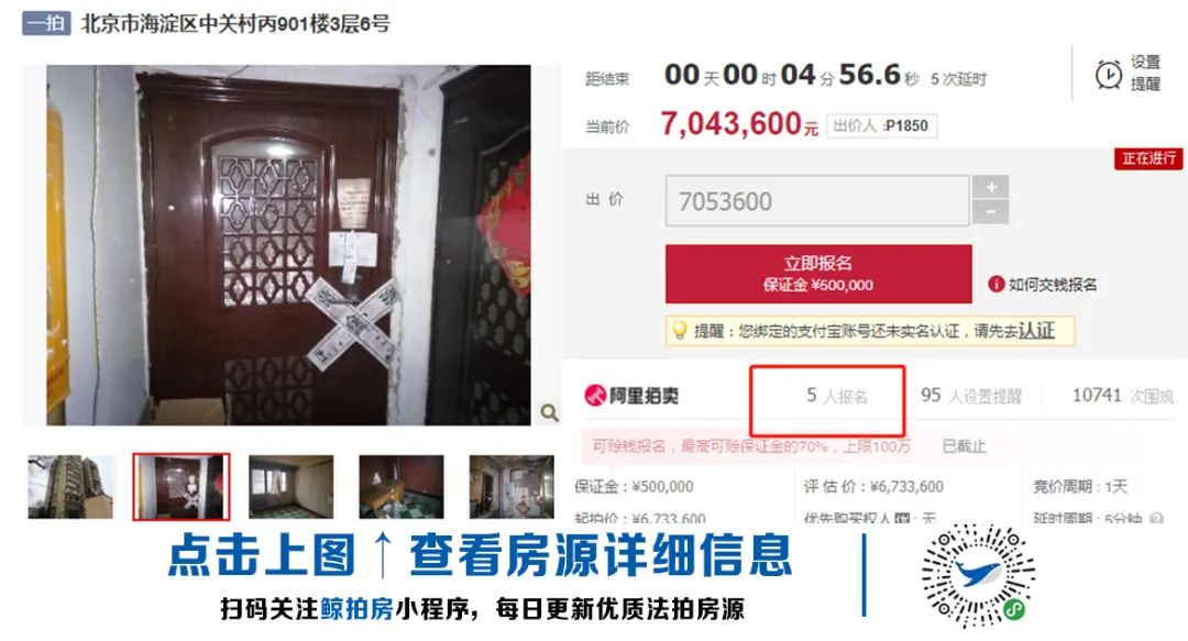 起拍價的提升并沒有熄滅人們對這套海淀優質房源的熱情,仍有5人報名展開激烈角逐。