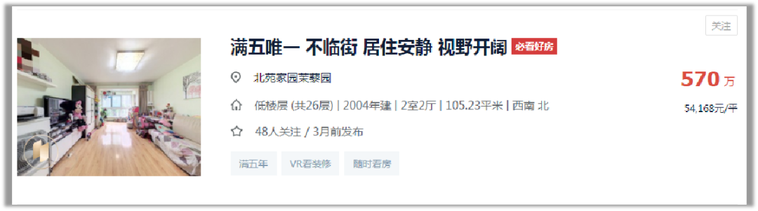 貝殼網上有滿五唯一的同戶型在賣,掛牌的價格是570萬元,可見這樣的起拍價也很難吸引到人。