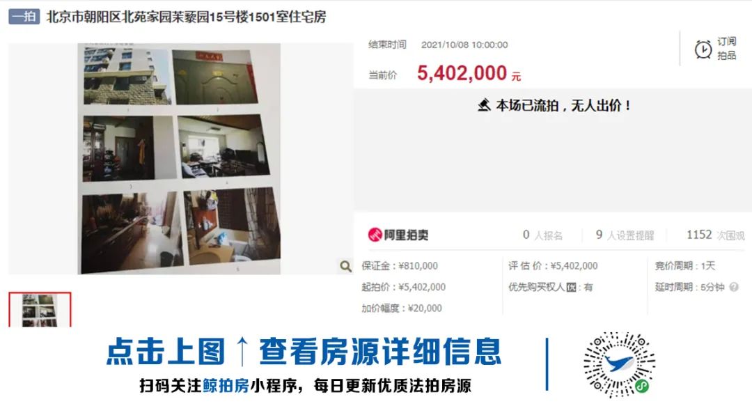 其余的還有大興的原生墅、房山的北京城建琨廷,拍賣過程都十分正常,重點要說的是一套朝陽區北苑家園茉藜園的房子。