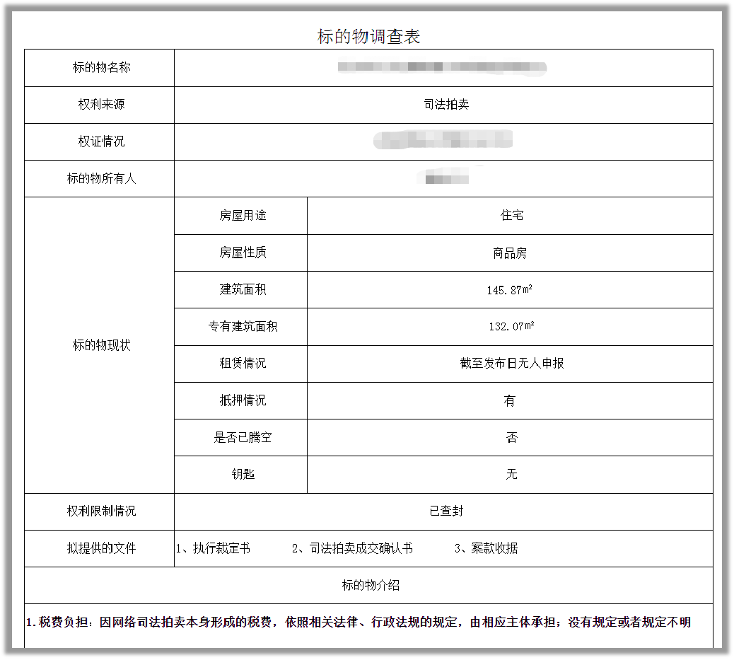 一般公告中常見的標的物調查表,不翼而飛,而標的物調查表是非常重要的記載房源信息載體,通常會公示房屋性質、租賃情況、產權證號、被執行人相關信息等內容,這些是輔助競買人作出競買決策的重要信息,等不要提房子沒有評估報告了。