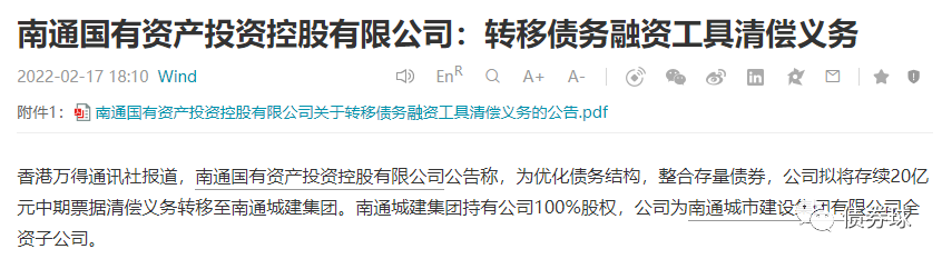 今天看到南通國(guó)有資產(chǎn)投資控股有限公司(以下簡(jiǎn)稱“南通國(guó)資”)關(guān)于轉(zhuǎn)移債務(wù)融資工具清償義務(wù)的公告,大致情況是計(jì)劃由發(fā)行人母公司,南通城市建設(shè)集團(tuán)有限公司,承繼發(fā)行人發(fā)行的相關(guān)中票的償付義務(wù)。筆者不禁聯(lián)想到城投債務(wù)的控制問(wèn)題。