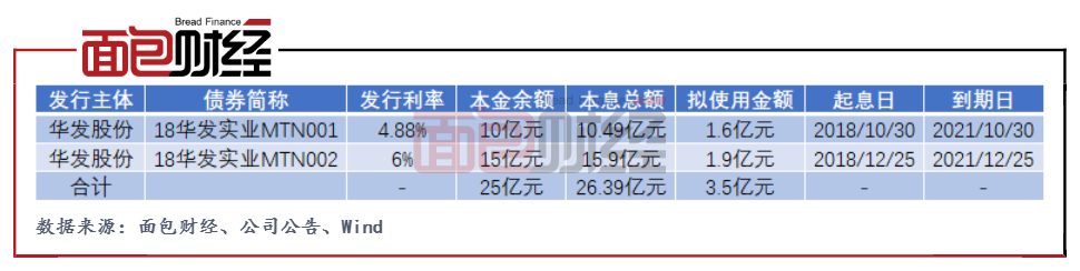 日到期的“18華發實業MTN001”,1.9億元用于2021年12月