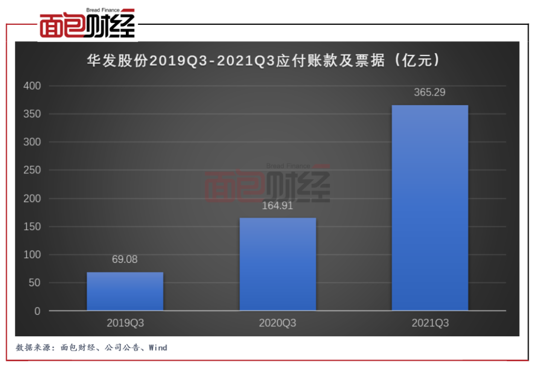 圖3:華發股份2019Q3-2021Q3應付賬款及票據