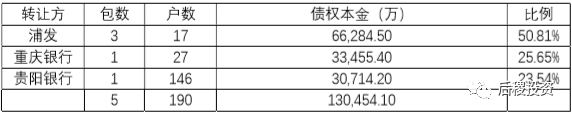2017 年,貴州省銀行一級(jí)市場(chǎng)出包5 個(gè),190 戶,本金13.05 億,其中浦發(fā)占比50.81%,出包最多。