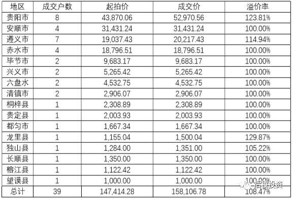 從成交戶數(shù)上分析,貴陽(yáng)市、安順市、遵義市相對(duì)交易較為活躍,其中貴陽(yáng)市溢價(jià)率最高,拍品質(zhì)量相對(duì)最好。
