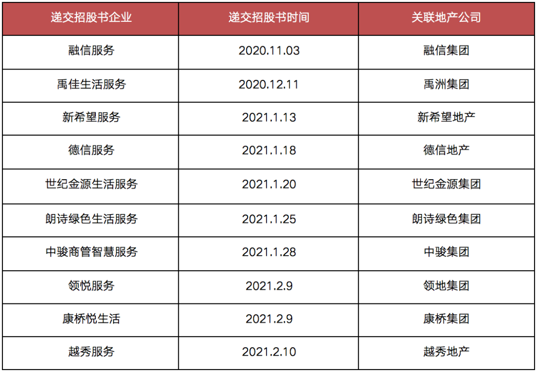 據克而瑞物管統計,目前已遞交招股書的物企有10家,均具備地產背景。