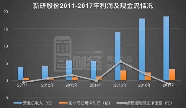 上市之后的新研股份主業(yè)增收乏力,銷售凈利率在2011至2013年由20.98%連續(xù)下降至17.78%,2014年雖回升至19.98%,但仍低于上市首年。在這樣的業(yè)績背景下,公司進(jìn)行了巨額并購。