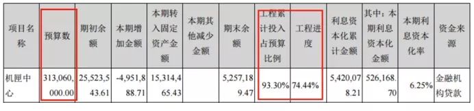 2016年機(jī)匣中心的完工進(jìn)度已經(jīng)達(dá)到92.74%,而一年之后的2017年,其完工進(jìn)度卻變?yōu)榱?4.44%。同時,該項目預(yù)算數(shù)也發(fā)生了變化。在2017年以前的財報中,機(jī)匣中心預(yù)算金額均為3.03億元,甚至在2017年半年報中,項目預(yù)算也還是3.03億元,完工進(jìn)度也已達(dá)到93.24%。而到了2017年年報中,項目預(yù)算突然變?yōu)榱?.13億元,同時完工進(jìn)度倒退近20%。