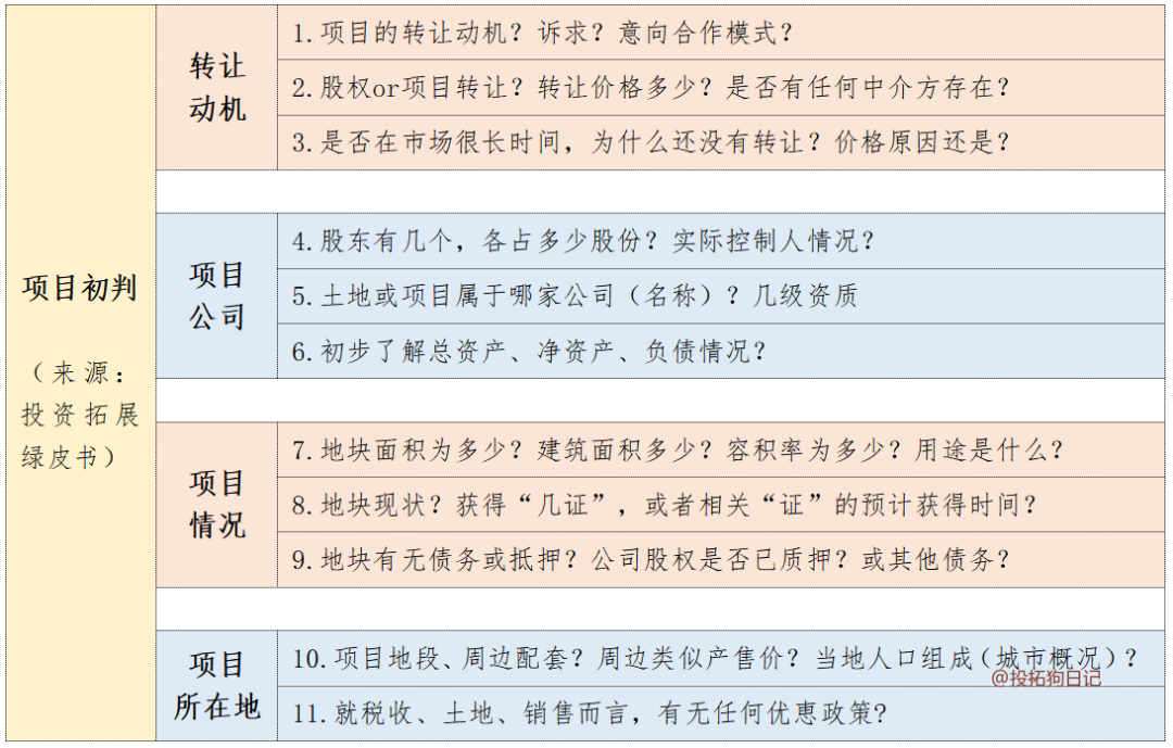 其實,投拓介入的部分主要還是公司立項前的項目初判。這里給大家貼張圖: