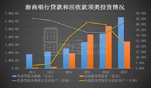 在監(jiān)管層加大對(duì)非標(biāo)資產(chǎn)的監(jiān)管下,2017年浙商銀行的應(yīng)收款項(xiàng)類投資終于下降至3432.23億元,同比驟減36%。