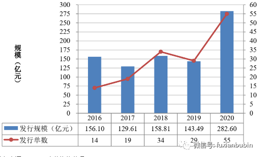 相較于2019年,2020年不良資產證券化產品發行單數從29單增加到55單,發行規模從143.49億元增加至282.60億元,凈增139.11億元,同比增長96.95%。