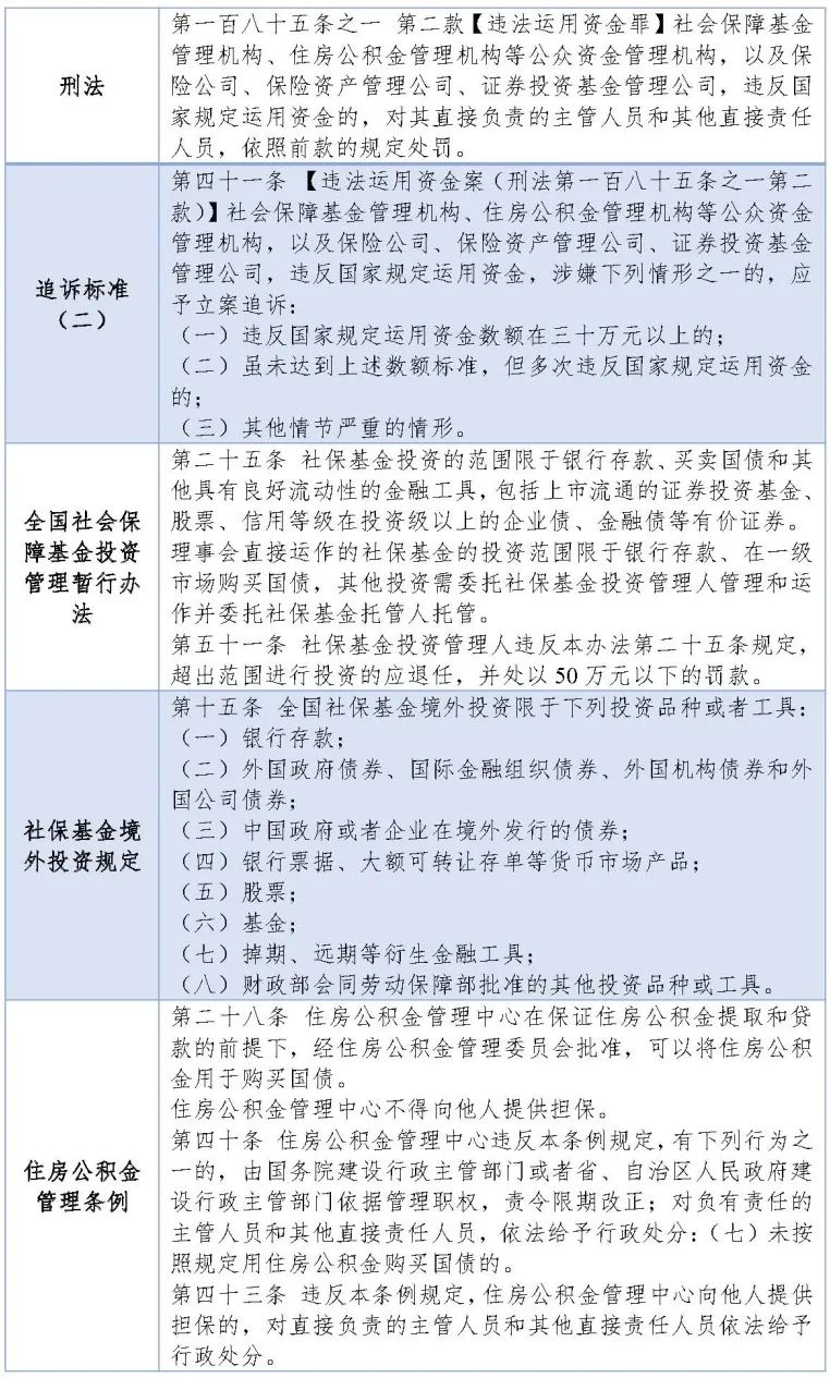 有些部門提出,負責經(jīng)營、管理保險資金、社會保障基金、住房公積金等公眾資金的單位,違反國家規(guī)定運用資金的,將會嚴重影響公眾資金的安全,影響社會穩(wěn)定,對情節(jié)嚴重的,應當追究刑事責任。法制工作委員會經(jīng)同有關部門研究,擬在刑法中增加規(guī)定:……對保險公司、保險資產管理公司、證券投資基金管理公司、社會保障基金管理機構、住房公積金管理機構等公眾資金經(jīng)營、管理機構,違反國家規(guī)定運用資金,情節(jié)嚴重的,追究刑事責任。