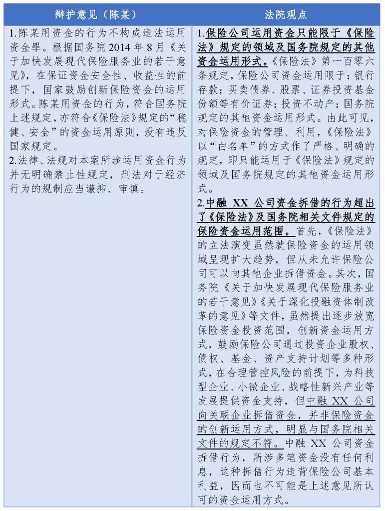 在“胡某某等案”中,法院判定中融XX公司向關聯(lián)企業(yè)資金拆借的行為超出了《保險法》及國務院相關文件規(guī)定的保險資金運用范圍。