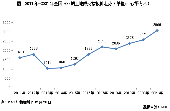 1、整體地價:地價再創歷史新高,增至3069元/平方米
